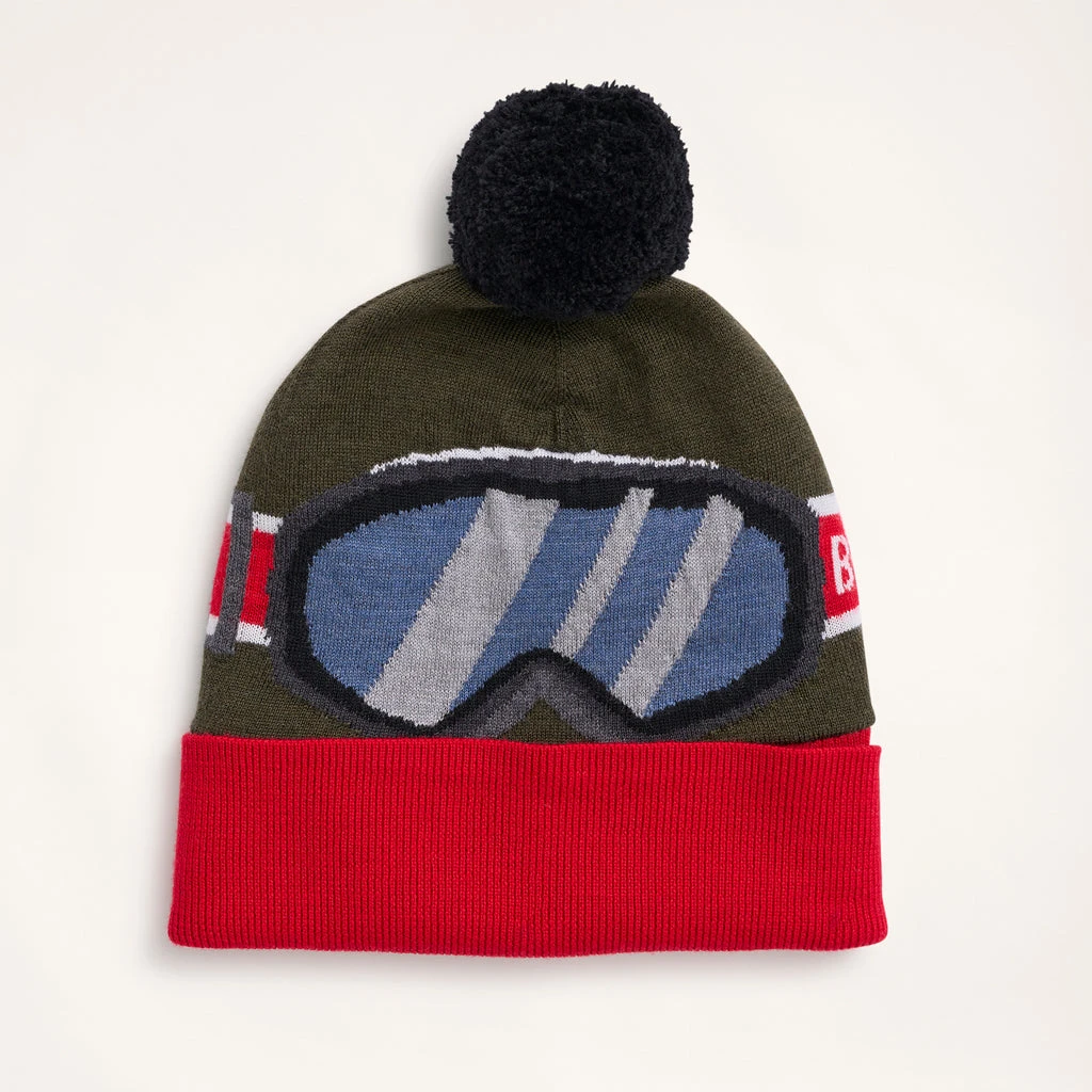 This unique and limited hat pays homage to early Spyder heritage with bold print and a pom on top. Made with 100% merino wool, the Ski Goggles Pom is incredibly comfortable and provides moisture wicking properties for a wide variety of weather conditions.