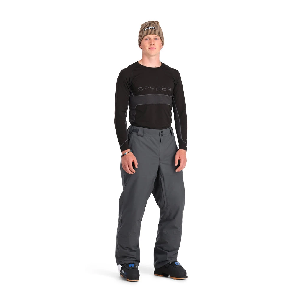 Ski pants with all the essentials and none of the frills, the Traction Pant is the newest addition to the Spyder Bronze category. Brand-new 360° stretch EXO SHIELD technology made with recycled polyester and a 20k laminate and 40g PrimaLoft® Black ECO Insulation allows for maximum mobility and plenty of warmth. Fully taped seams ensure that moisture stays locked out, and articulated knee construction ensures an ideal fit. But like we said, only essentials, none of the frills.